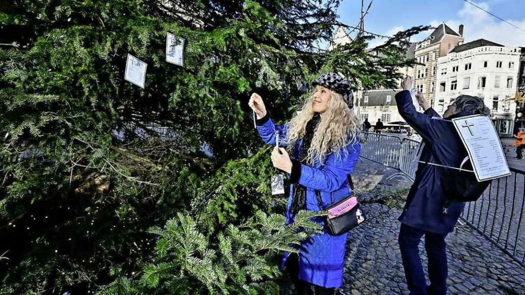 Afgelopen woensdag werd op de Dam in Amsterdam de kerstboom volgehangen met rouwkaarten voor alle dieren die in Nederland jaarlijks gedood worden voor consumptie. Per dag worden er meer dan 1,7 miljoen – 17.000.000 – dieren gedood voor consumptie. Per jaar zijn dat 6.205.000.000 dieren we doden en slachten ten behoeven van onze vleesconsumptie. Alleen in Nederland! alle reden om te rouwen.